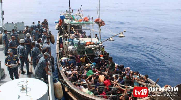 ঢাকাঃ মাছ ধরার নৌকায় চেপে অবৈধভাবে মালয়েশিয়া যাওয়ার সময় ২১৪ রোহিঙ্গাকে আটক করেছে বাংলাদেশ নৌবাহিনী।মঙ্গলবার (৮ এপ্রিল) বঙ্গোপসাগরে টহলরত বাংলাদেশ নৌবাহিনী জাহাজ ‘বানৌজা দুর্জয়’ গভীর সমুদ্র থেকে তাদেরকে আটক করে। আন্তঃবাহিনী জনসংযোগ পরিদফতর (আইএসপিআর) থেকে পাঠানো এক সংবাদ বিজ্ঞপ্তিতে এ তথ্য জানানো হয়েছে।বিজ্ঞপ্তিতে বলা হয়, সেন্টমার্টিন্স থেকে ৪৪ নটিক্যাল মাইল দক্ষিণ-পশ্চিমে অবস্থানরত ‘এফভি কুলসুমা’ নামক একটি মাছ ধরার নৌকার সন্দেহজনক গতিবিধি লক্ষ করে বাংলাদেশ নৌবাহিনী জাহাজ ‘বানৌজা দুর্জয়’। তাৎক্ষণিকভাবে নৌবাহিনী জাহাজ মাছ ধরার নৌকা ‘এফভি কুলসুমা’র কাছে পৌঁছায় এবং এর গতিপথ রোধ করে। এ সময় নৌকাটিতে তল্লাশি চালিয়ে ২১৪ জন মায়ানমারের বাস্তুচ্যুত নাগরিককে আটক করা হয়। যাদের মধ্যে ১১৮ জন পুরুষ, ৬৮ জন নারী এবং ২৮ জন শিশু রয়েছে। বিজ্ঞপ্তিতে আরো বলা হয়, নৌকাটি সোমবার দিবাগত রাত ২টার দিকে কক্সবাজারের টেকনাফ শাপলাপুর এলাকা থেকে মালয়েশিয়ার উদ্দেশ্যে যাত্রা করে। আইনানুগ ব্যবস্থা গ্রহণের লক্ষ্যে আটককৃত মাছ ধরার নৌকা ও মিয়ানমারের বাস্তুচ্যুত নাগরিকদের বাংলাদেশ কোস্ট গার্ডের সেন্টমার্টিন্স স্টেশনে হস্তান্তর করা হয়েছে। প্রাথমিক জিজ্ঞাসাবাদে আটককৃতরা জানিয়েছে, তারা সকলেই মালয়েশিয়ায় অবৈধভাবে প্রবেশের উদ্দেশ্যে যাত্রা করেছিলো। উল্লেখ্য, নৌকাটি নূন্যতম জীবনরক্ষাকারী সরঞ্জাম, পর্যাপ্ত খাদ্য, পানি ও সুরক্ষা ব্যবস্থা ব্যতীত যাত্রা শুরু করে যা গভীর সমুদ্রে মানবিক বিপর্যয় সৃষ্টি করতে পারতো। নৌবাহিনীর তাৎক্ষণিক ও কার্যকর পদক্ষেপে এ বিপর্যয় প্রতিহত করা সম্ভব হয়েছে।